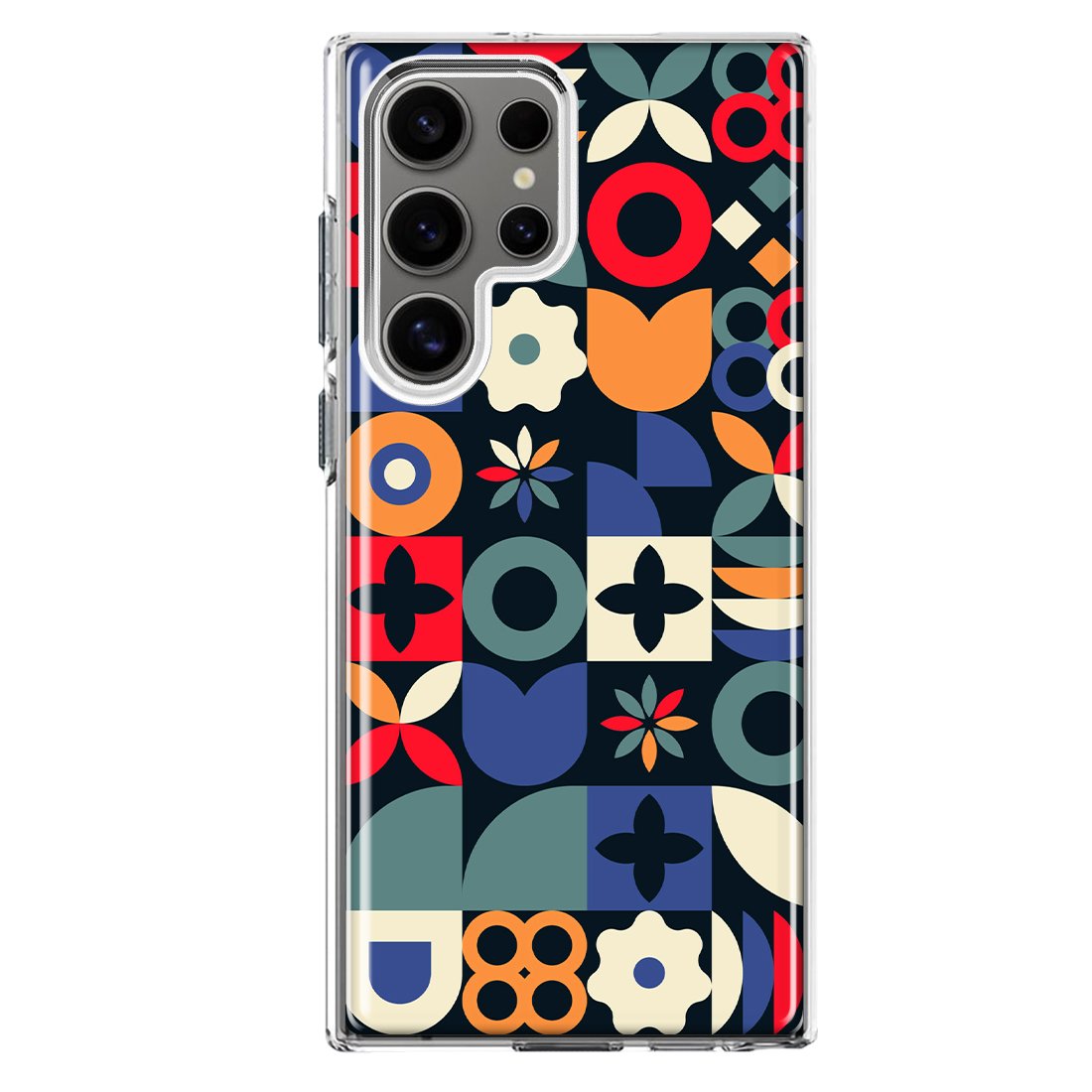 For Samsung Galaxy S22 Ultra Vintage Geometric Patterns Slim Shockproof Hard Shell TPU Case Heavy Duty Protective Phone Cover