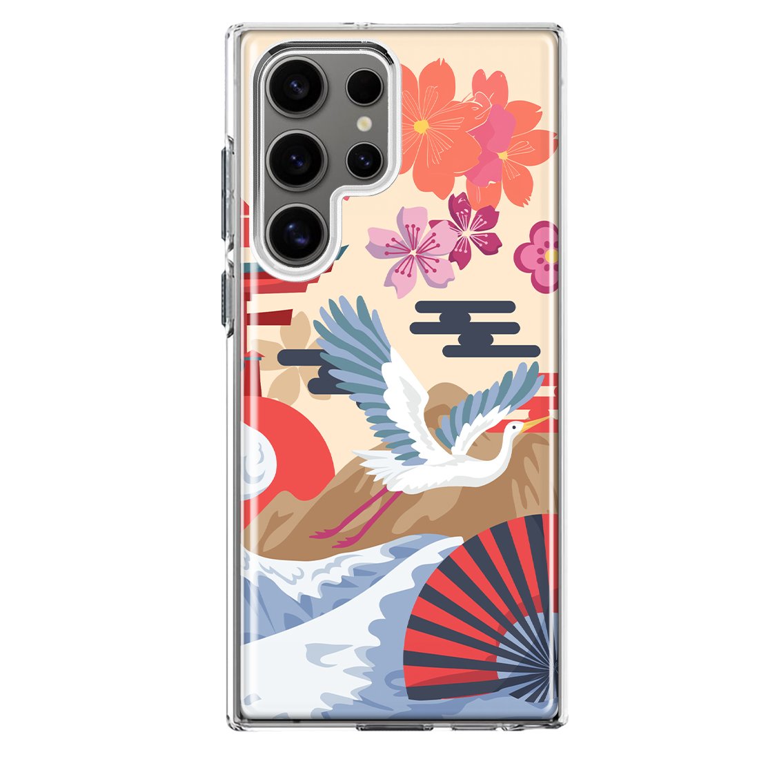 For Samsung Galaxy S22 Ultra Vintage Japanese Crane Slim Shockproof Hard Shell TPU Case Heavy Duty Protective Phone Cover