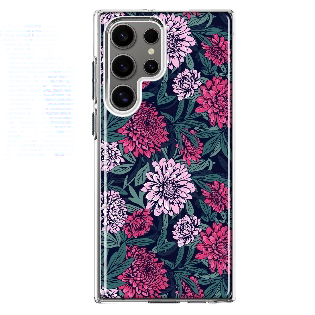 For Samsung Galaxy S22 Ultra Vintage Pink Flowers and Leaves Slim Shockproof Hard Shell TPU Case Heavy Duty Protective Phone Cover