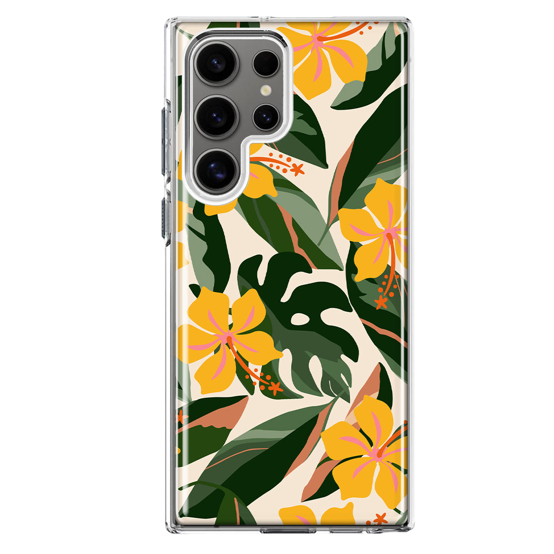 For Samsung Galaxy S22 Ultra Vintage Tropical Flowers Slim Shockproof Hard Shell TPU Case Heavy Duty Protective Phone Cover