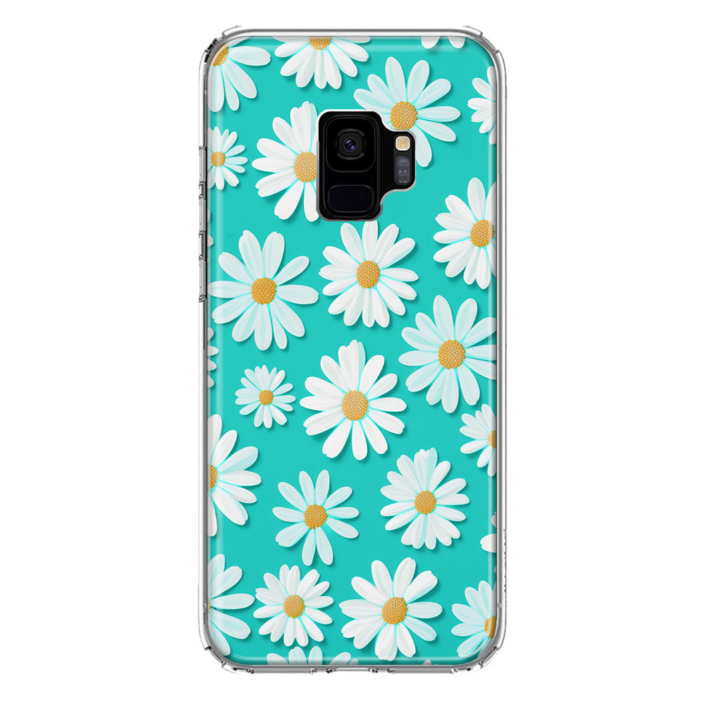 For Samsung Galaxy S9 Turquoise Teal White Daisies Cute Daisy Polka Dots Double Layer Phone Case Cover
