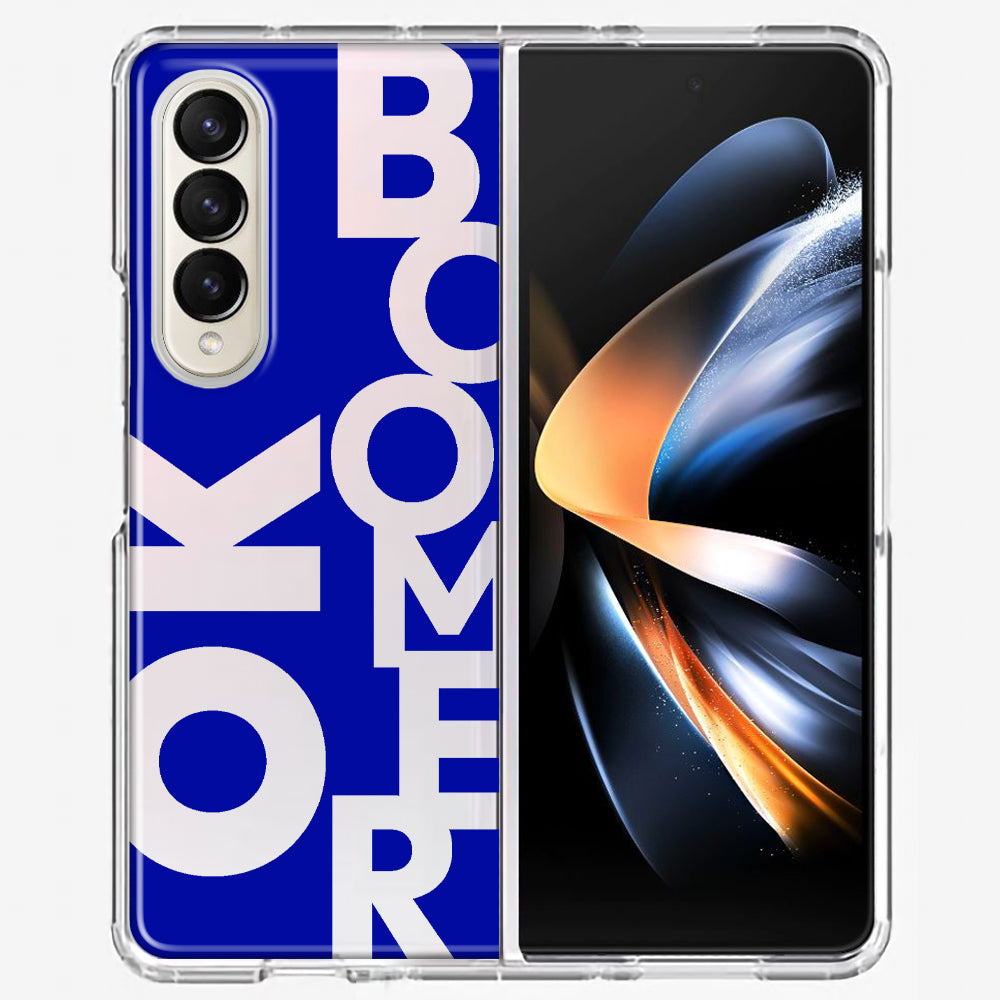 For Samsung Galaxy Z Fold 4 Blue Clear Funny Text Quote Ok Boomer Design Hybrid Protective Phone Case Cover