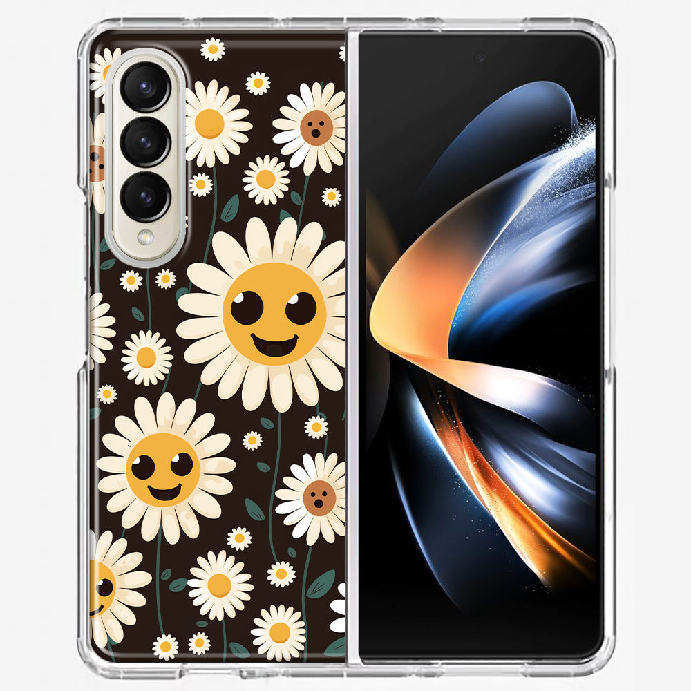 For Samsung Galaxy Z Fold 4 Cute Smiley Face White Daisies Double Layer Phone Case Cover