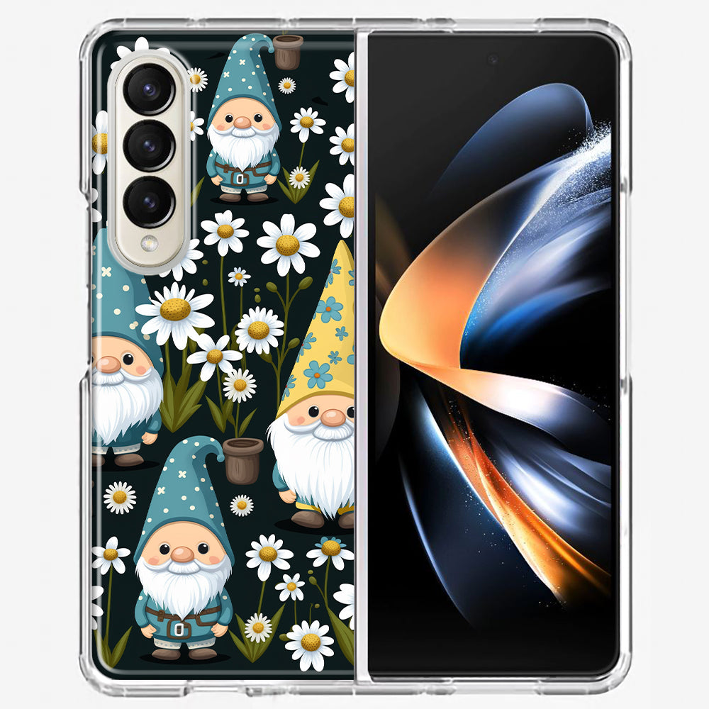 For Samsung Galaxy Z Fold 4 Cute White Daisies Gnomes Flowers Floral Double Layer Phone Case Cover
