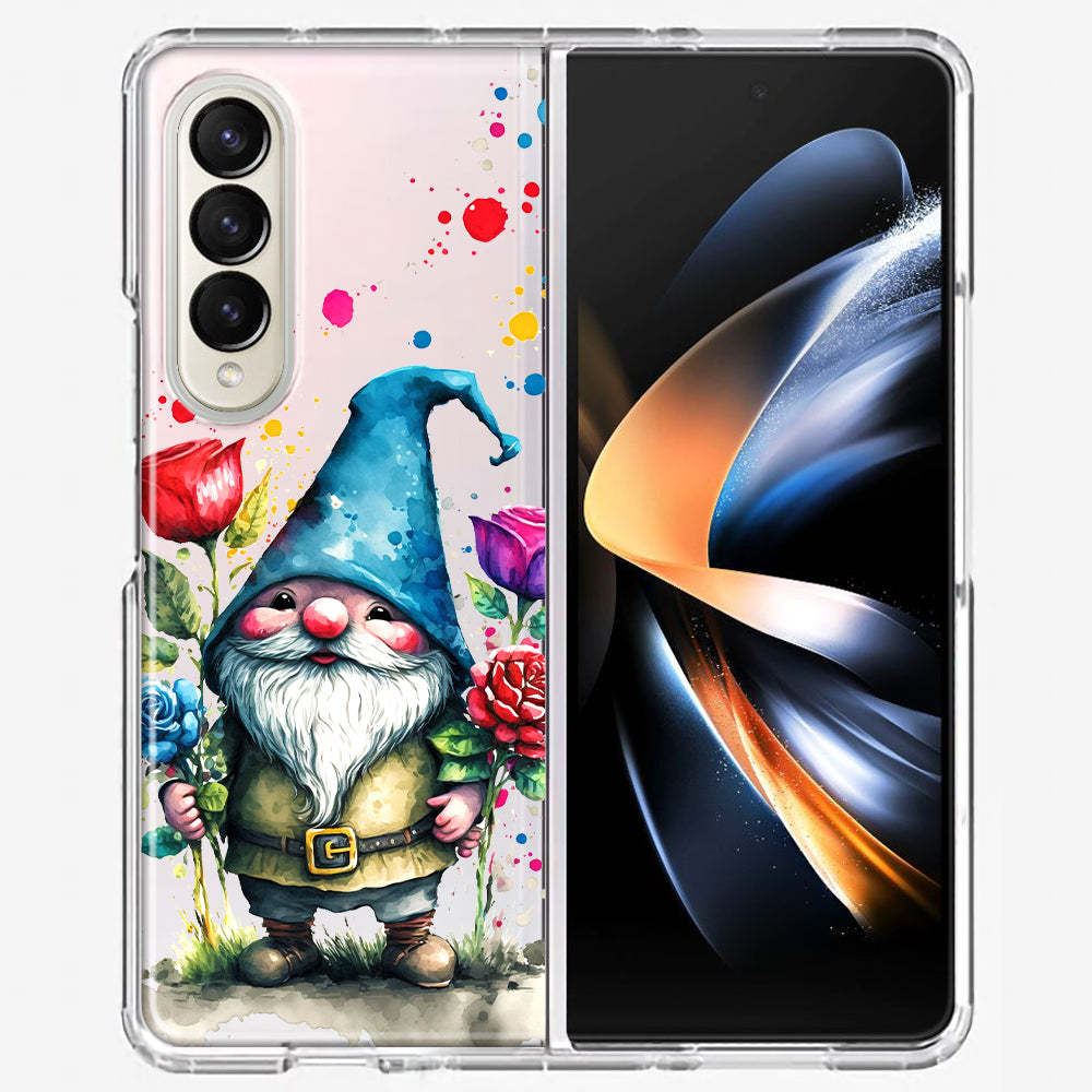 For Samsung Galaxy Z Fold 4 Gnome Red Purple Blue Roses Garden Design Hybrid Protective Phone Case Cover